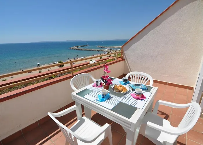 1-slaapkamer Rnet - Rhc 1613 Roses Holiday Center appartement biedt uitzicht op het zwembad en ligt binnen 3 km afstand van het Windoor Real Fly. Dit appartement van 55 m² heeft een terras waar gasten kunnen genieten van een kust uitzicht op de zee.